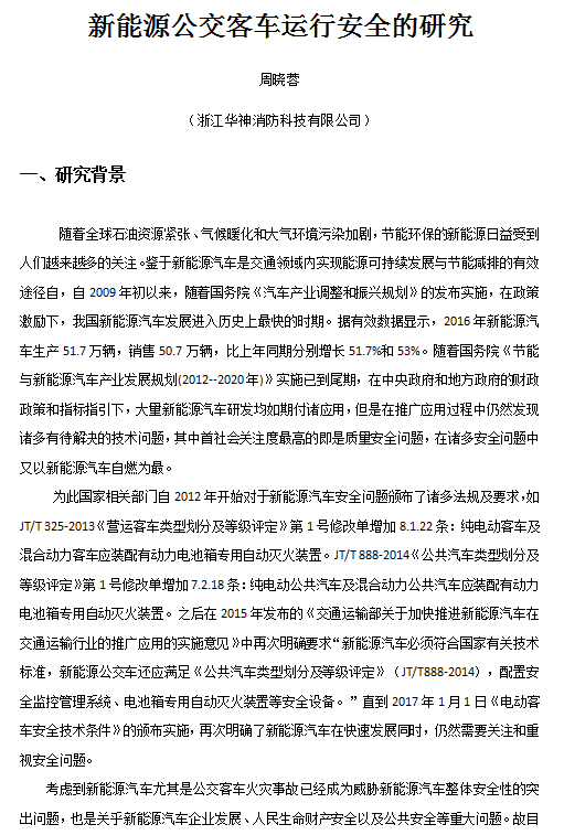 新能源公交客车运行安全的研究